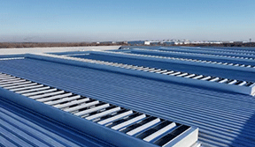 使用產品:三角型排煙天窗+圓拱型固定采光天窗